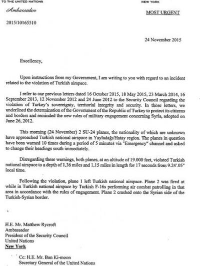 Για παραβίαση του τουρκικού εναερίου χώρου για 17 δευτερόλεπτα κατέρριψαν οι Τούρκοι το ρωσικό μαχητικό. Αυτό τουλάχιστον υποστήριξαν οι εκπρόσωποι της χώρας στην έκτακτη συνεδρίαση του ΝΑΤΟ στην οποία παρουσίασαν τα στοιχεία που οδήγησαν στην κατάρριψη του Σουχόι SU-24.