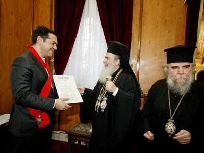 Η φωτογραφία τραβήχτηκε κατά τη διάρκεια της απονομής στον Αλ. Τσίπρα του Μεγαλόσταυρου του Τάγματος του Παναγίου Τάφου.