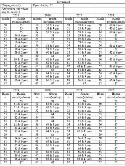 Οπως γνωστοποιεί η νέα εγκύκλιος (σχετικά με την εφαρμογή των διατάξεων της παραγράφου Ε του ν.4336/2015), με τα νέα δεδομένα από 1.1.2022, θεσπίζονται ως όρια ηλικίας συνταξιοδότησης για θεμελίωση συνταξιοδοτικού δικαιώματος πλήρους σύνταξης λόγω γήρατος για κάθε κατηγορία ασφαλισμένων, των Οργανισμών Κοινωνικής Ασφάλισης, συμπεριλαμβανομένης της Τράπεζας της Ελλάδος, το 62ο έτος της ηλικίας (με 40 έτη ή 12.000 ημέρες ασφάλισης) και το 67ο έτος της ηλικίας (με 4.500 ημέρες ή 15 έτη ασφάλισης).