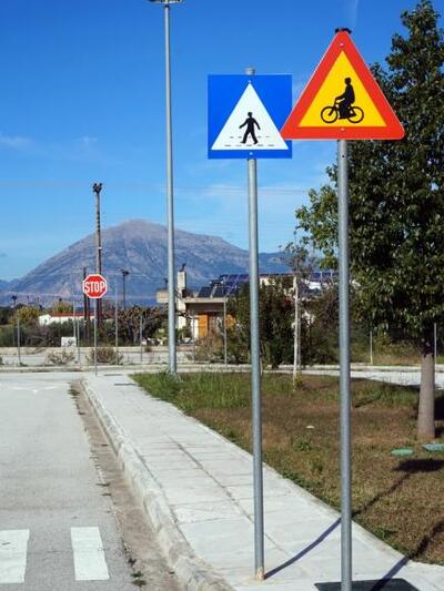 Ταυτόχρονα υπάρχουν σχεδόν όλες οι πινακίδες σήμανσης οι διαγραμμίσεις και οι φωτεινοί σηματοδότες που κανείς συναντά στους δρόμους.