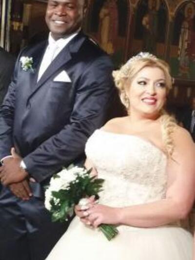 Μετά από πέντε χρόνια σχέσης παντρεύτηκαν κι έλαμπαν από χαρά, μια χαρά που έγινε ακόμη μεγαλύτερη για τον Βασίλη αφού κοντά του βρίσκεται αυτές τις μέρες η οικογένειά του. Ένα ζευγάρι τόσο διαφορετικό αφού ο Βασίλης είναι Νιγηριανός και έχει ύψος 2,05 και η νύφη Ροδίτισσα και κατάξανθη με ύψος 1,62...