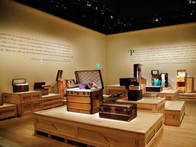 Σπάνιες παλιές βαλίτσες, μπαούλα, καπελιέρες, τσάντες αλλοτινών εποχών παρουσιάζονται με απίστευτο «στήσιμο» συνδεδεμένες με μοντέλα από τη νέα εποχή του οίκου. Στα εγκαίνια παρευρέθηκαν ο γάλλoς υπουργός βιομηχανίας Εμμανουέλ Μακρόν, η ιδιοκτήτρια οικογένεια Αρνώ, ο καλλιτεχνικός διευθυντής του Louis Vuitton, Νικολά Κεσκιέρ με τη μούσα του Κατρίν Ντενέβ,οι καλλονές Νατάλια Βοντιάνοβα, Εύα Ερτζιγκόβα, η ηθοποιός Αντέλ Εξαρχόπουλος, οι σχεδιαστές Καρλ Λάγκερφελντ, Αλμπερ Ελμπαζ κ.α.