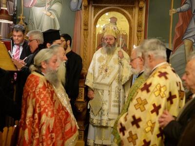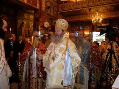 Στον εσπερινό και στην Θεία λειτουργία ανήμερα χοροστάτησε ο Επίσκοπος Κερνίτσης Χρύσανθος