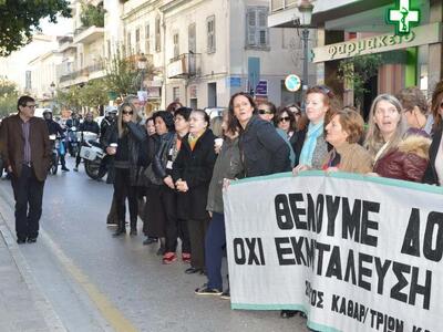 Ο Δήμαρχος Πατρέων Κώστας Πελετίδης, παραβρέθηκε στην σημερινή απεργιακή συγκέντρωση και την πορεία στους κεντρικούς δρόμους της πόλης των καθαριστριών δημόσιων σχολείων, που προχώρησαν σε 24ωρη απεργία, διεκδικώντας να μην μειωθούν κατά 10% οι αποδοχές τους, να πληρωθούν άμεσα τα δεδουλευμένα, και τη μόνιμη και σταθερή εργασία και την ένταξη στα βαριά και ανθυγιεινά χωρίς όρους και προϋποθέσεις.