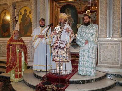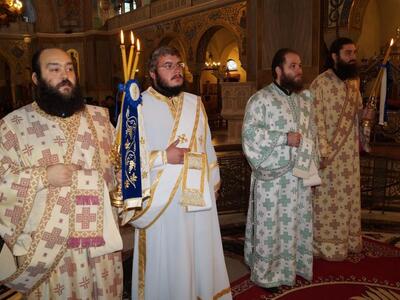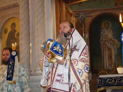 Προεξήρχε του Όρθρου και της Θείας Λειτουργίας στο Νέο Ιερό Ναό Αγίου Ανδρέου Πατρών.