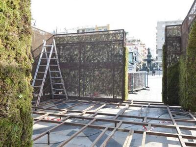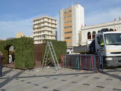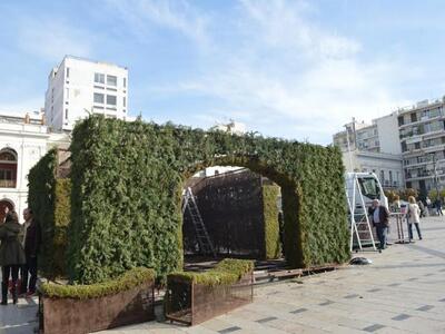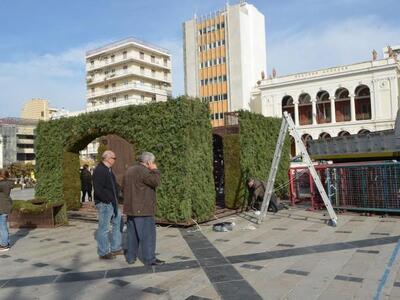 Η γνωστή... φάτνη των Χριστουγέννων ετοιμάζεται από το πρωί στο κέντρο της πόλης.