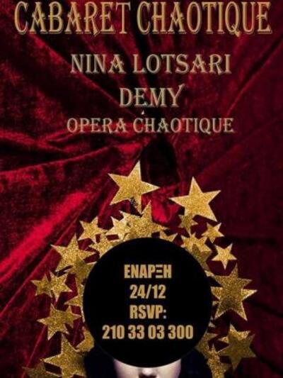 Παραμονή Χριστουγέννων θα κάνει πρεμιέρα το ολοκαίνουριο cabaret show της εντυπωσιακής πατρινής σοουγούμαν Νίνας Λοτσάρη στο Casablanca Music Hall στο κέντρο της πρωτεύουσας. Πάντα εκρηκτική, υπόσχεται ξανά τραγούδι, χορό, λάμψη με σκηνικούς συνοδοιπόρους την αγαπημένη, νεαρή ποπ τραγουδίστρια Demy και το ανατρεπτικό ντουέτο των Opera Chaotique. Oπως πληροφορηθήκαμε, το ύφος αναμένεται πολύ-πολύ παριζιάνικο.