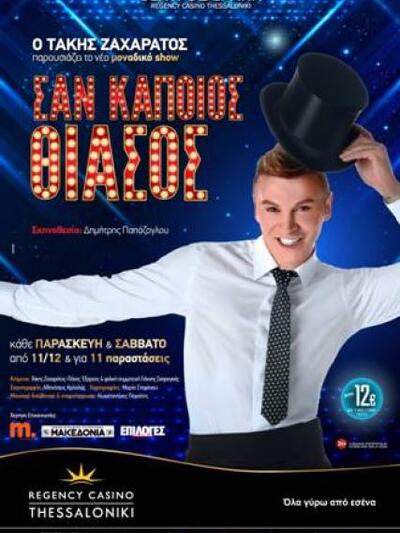 Σαν κάποιος θίασος…Το φαντασμαγορικό show του Πατρινού μίμου, τραγουδιστή και σώουμαν Τάκη Ζαχαράτου στο Θέατρο Βεργίνα του Regency Casino Thessaloniki, όπου έχει ξαναεμφανιστεί κατά το παρελθόν, είναι πια γεγονός.