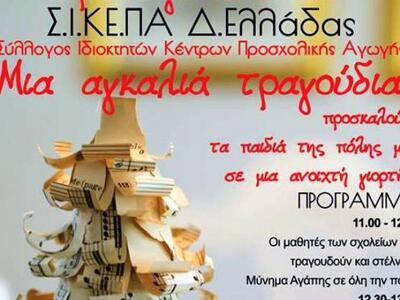 Ο Σύλλογος Κέντρων Προσχολικής Αγωγής Δυτικής Ελλάδος προσκαλεί τα παιδιά της πόλης σε μια ανοιχτή γιορτή το Σάββατο 19 Δεκεμβρίου στην Πλ.Γεωργίου.Το πρόγραμμα της γιορτής ξεκινάει στις 11:00 το πρωί με τους μαθητές και μαθήτριες των σχολείων μας να τραγουδούν και να στέλνουν μήνυμα Αγάπης σε όλη την πόλη.