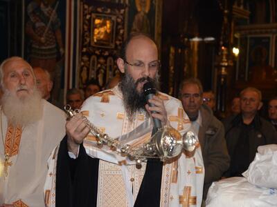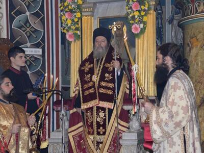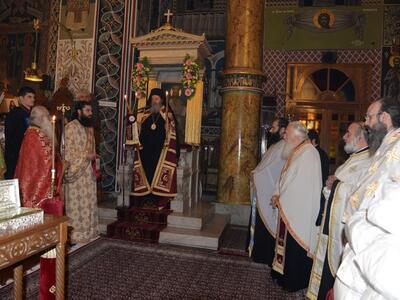 Την παραμονή της εορτής και στον Ιερό Ναό Παντοκράτορος Πατρών, όπου ως πολύτιμος θησαυρός φυλάσσεται η χείρα του Αγίου Ιερομάρτυρος Ελευθερίου, τελέστηκε Μέγας Πανηγυρικός Αρχιερατικός Εσπερινός χοροστατούντος του Θεοφιλεστάτου Επισκόπου Κερνίτσης κ. Χρυσάνθου, με την συμμετοχή πλειάδος Ιερέων και Διακόνων της Ιεράς Μητροπόλεώς μας.