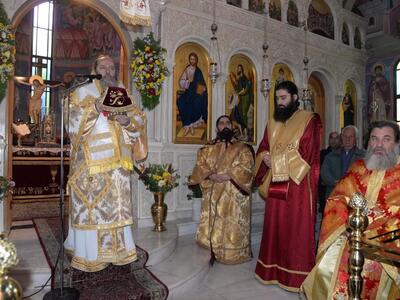 Την κυριώνυμο ημέρα και στον πανηγυρίζοντα Ιερό Ναό Αγίου Ελευθερίου Πατρών τελέσθηκε ο Όρθρος και εν συνεχεία η Πανηγυρική Αρχιερατική Θεία Λειτουργία κατά την οποία προεξήρχε ο Θεοφιλέστατος Επίσκοπος Κερνίτσης κ. Χρύσανθος, ο οποίος και ομίλησε επικαίρως.