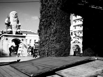 Ο ίδιος από πρόπερσι, όπως και η φάτνη, με τα σπιτάκια χωρίς ... κατοίκους, καθώς δεν ενοικιάζονται σε επαγγελματίες για ζαχαρωτά, το χωριό ημιτελές, όπως το άφησε η προηγούμενη δημοτική αρχή, χωρίς καμία προσθήκη και το γκαζόν να γεμίζει τα κενά που χάσκουν άδεια, και το χώρο που δεν διατίθεται για παιχνίδια, καρουζέλ, ή παγοδρόμια, όπως συμβαίνει σε όλες τις άλλες πόλεις αυτού του πλανήτη.