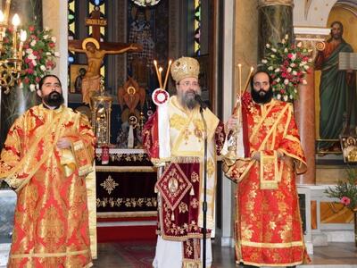 Ἀνήμερα ἐτελέσθη Ἀρχιερατικό Συλλείτουργο ὑπό τοῦ Σεβασμιωτάτου Μητροπολίτου Πατρῶν κ.κ. Χρυσοστόμου καί τοῦ Θεοφιλεστάτου Ἐπισκόπου Κερνίτσης κ. Χρυσάνθου.