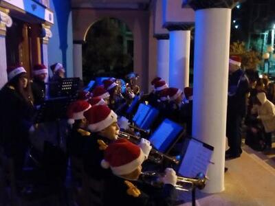 Τη μουσική ψυχαγωγία των παρευρισκομένων "ανέλαβαν" η Youth Marching Band – νεανική μπάντα της Δημοτικής Φιλαρμονικής Αιγείρας "ΙΩΑΝΝΗΣ ΚΟΚΟΝΕΤΣΗΣ" με πασίγνωστες χριστουγεννιάτικες μελωδίες, όπως Christmas March, The Twelve Days of Christmas, Jingle Bells Fantasy, We wish you a Merry Christmas, 3 Christmas Parades, The Most Wonderful Time of the Year κ.ά, υπό την μουσική διεύθυνση του Παναγιώτη Παναγάκου.