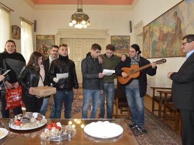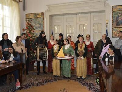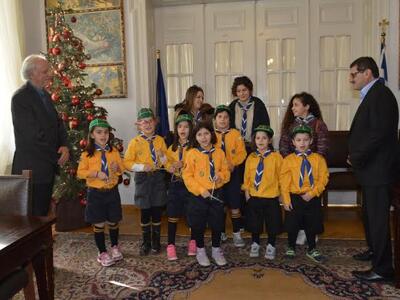 Τα κάλαντα των Χριστουγέννων έψαλαν σήμερα στον Δήμαρχο Πατρέων Κώστα Πελετίδη, στρατιώτες του ΚΕΤχ, το Χορευτικό του Λυκείου Ελληνίδων, το 3ο Σύστημα Προσκόπων, μέλή της ΚΝΕ (με στίχους προσαρμοσμένους στους καιρούς που διανύουμε), μαθητές Αιγυπτιακού Σχολείου και ο Φάρος Ποντίων.