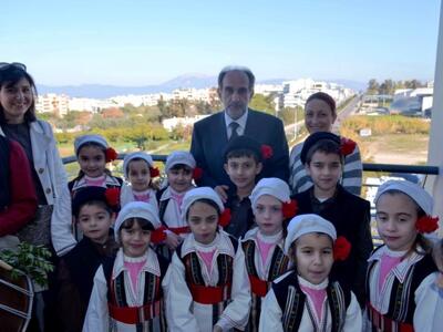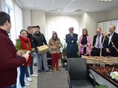 Τα παιδιά χάρισαν στον Περιφερειάρχη Απ. Κατσιφάρα ένα χειροποίητο καραβάκι που ανέγραφε «Ευχές για το 2016 με καρδιά και ψυχή ελληνική», ενώ ζήτησαν και είδαν τη θέα από το μπαλκόνι.