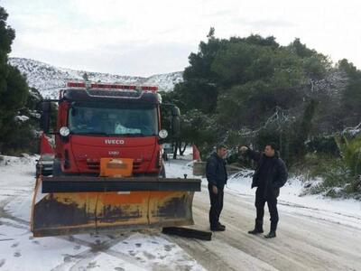 "Έχουμε προμηθευετεί έγκαιρα ποσότητες αλατιού για αποπαγοποίηση του οδικού δικτύου ενώ οχήματα της περιφέρειας έχουν διατεθεί και στους δήμους όπου ενδεχομένως προκύψουν προβλήματα από τον χιονιά", προσθέτει.