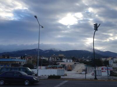 Την ίδια στιγμή το φαινόμενου του.. "κλιματιστικού" λειτουργεί για τα καλά και προς την Αχαϊκή πρωτεύουσα με τα κρύα ρεύματα αέρα να.. επιβεβαιώνουν την εικόνα στα βουνά.