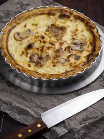 Τάρτα με μανιτάρια σωτέ, κατσικίσιο τυρί και λάδι λευκής τρούφας..