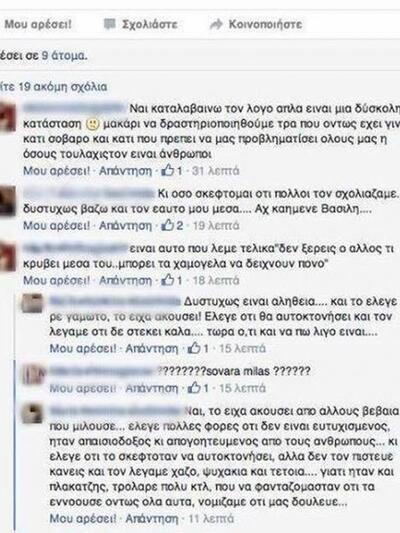Όπως αποκαλύπτουν τα σχόλια συμφοιτητών του στο Facebook, ο νεαρός Βασίλης είχε κατά το παρελθόν εκφράσει την πρόθεσή του να βάλει τέλος στη ζωή του, εκφράζοντας την απογοήτευσή του για τους ανθρώπους γύρω του.