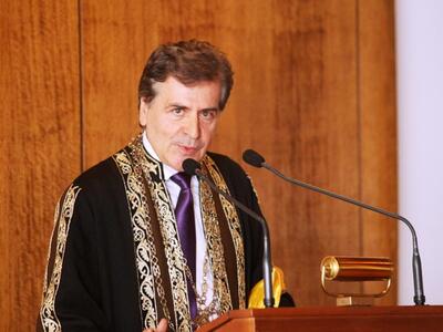 Το έργο και την προσωπικότητα του τιμώμενου παρουσίασε ο Καθηγητής του Τμήματος ΗΜΤΥ, Αλέξιος Μπίρμπας, και ακολούθησε η αναγόρευση τού τιμώμενου σε Επίτιμο Διδάκτορα και η περιένδυσή του από την Πρύτανι.
