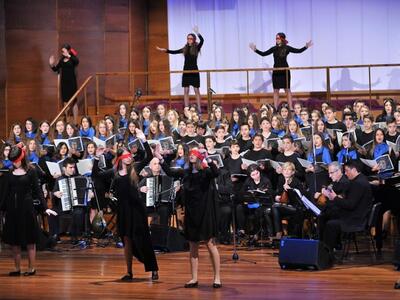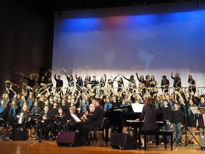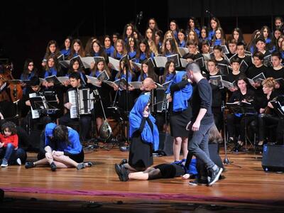 Νωπές ακόμα και κυρίως ενθουσιώδεις οι εντυπώσεις από την επιβλητική και πολυπληθή σε συντελεστές, αφιερωματική εκδήλωση του Αρσακείου Πατρών για τα 90 χρόνια του ζωντανού μύθου Μίκη Θεοδωράκη την περασμένη Παρασκευή στο Συνεδριακό της πανεπιστημιούπολης. Η βραδιά προκάλεσε κοσμοσυρροή γονέων, οικογενειών, εκπαιδευτικών και παλιών μαθητριών του Αρσακείου, καθώς στη σκηνή ανέβηκαν μαθητές του Γυμνασίου και του Λυκείου, μαζί με καθηγητές και αποφοίτους ξεπερνώντας τα 150 άτομα!