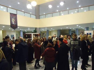 Στις μπροστινές σειρές διακρίναμε την πρύτανη του Πανεπιστημίου Πατρών Βενετσάνα Κυριαζοπούλου, που είναι απόφοιτος του Αρσακείου Πατρών και χαιρέτησε στο τέλος της εκδήλωσης, με την ευχή να καλωσορίσει τους μαθητές σύντομα στο πανεπιστήμιο. Επίσης τον πατήρ Νικόλαο Σκιαδαρέση, τη Σοφία Χριστοπούλου, προϊσταμένη Επιστημονικής και Παιδαγωγικής Καθοδήγησης Δ/θμιας Εκπαίδευσης Δ.Ελλάδος, τον αναπληρωτή πρυτάνεως κ. Αγγελόπουλο, εκπρόσωπο του Δημάρχου, παλιές καθηγήτριες και μαθήτριες του σχολείου. Διαβάστηκε ακόμα και κείμενο αποφοίτων του 1965 ενώ υπογραμμίστηκε από το διευθυντή του Λυκείου Μάνο Πετράκη πως η επέτειος των 90 χρόνων του Μίκη συμπίπτει με τα 180 χρόνια της Φιλεκπαιδευτικής Εταιρείας.