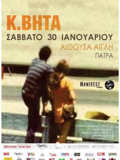 Όπως αναφέρει το σχετικό δελτίο Τύπου, το Σάββατο 30 Ιανουαρίου 2016, ο Κ. Βήτα ανεβαίνει στην σκηνή της Αίθουσας Αίγλη, στη Βέσο Μάρε, στην Πάτρα, με νέα τραγούδια από τον καινούριο του δίσκο αλλά φυσικά και παλαιότερο υλικό.
