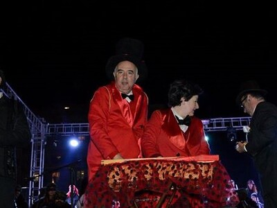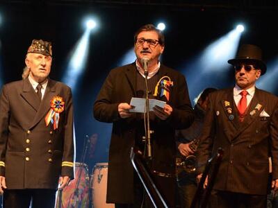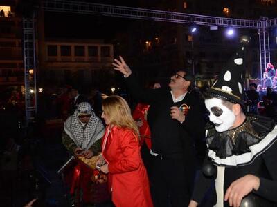 Τον Δήμαρχο κάλεσε στη σκηνή ο πρόεδρος της Κοινωφελούς Επιχείρησης «Καρναβάλι Πάτρας» Νίκος Χρυσοβιτσάνος υπογραμμίζοντας: