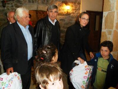 Μετά τις ανταλλαγές των ευχών τα μέλη του Συλλόγου πρόσφεραν στους μαθητές του σχολείου τα καθιερωμένα δωράκια και προσφέρθηκε σε όλους κέρασμα με παραδοσιακό φαγητό, βραστό και σούπα τραχανά, που απόλαυσαν όλοι οι παρευρισκόμενοι.