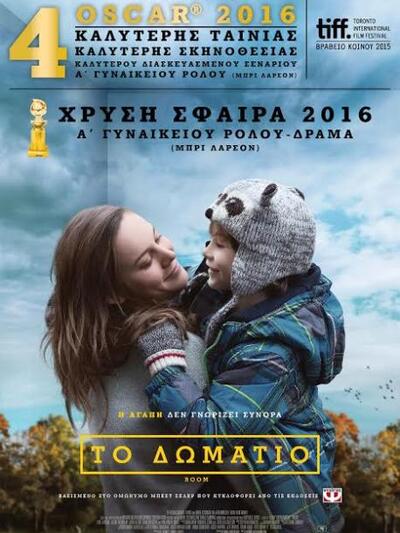 Το φιλμ «Το Δωμάτιο» που από τις 4 Φεβρουαρίου 2016, θα αρχίσει να προβάλλεται στις ελληνικές αίθουσες (αναμένεται και στην Πάτρα, στα Ster Cinemas, στη Βέσο Μάρε), σε διανομή της Seven Films, είναι υποψήφιο για 4 βασικά Όσκαρ, καλύτερης ταινίας, σκηνοθεσίας, α’ γυναικείου και διασκευασμένου σεναρίου.