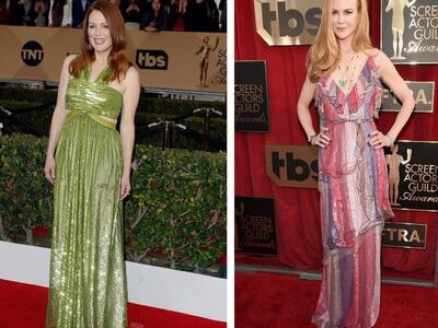 Απαντες σαγήνευσε η μικρή σουηδο-λονδρέζα Αλίσια με το εκτυφλωτικό μάξι Louis Vuitton που παρέπεμπε σε γεωμετρικό πίνακα σύγχρονης τέχνης, σε ένα κόκκινο χαλί που γενικότερα δεν εντυπωσίασε διόλου. Οι ντίβες του εκράν φόρεσαν τουαλέτες που έχουμε ξαναδεί, είτε ατύχησαν εντελώς στις επιλογές τους. Χαρακτηριστικά παραδείγματα η συνήθως υπέρκομψη Τζουλιάν Μουρ με λαχανί φόρεμα Givenchy που δεν της πήγαινε καθόλου αλλά και η Νικόλ Κίντμαν με χρωματιστό, ιριδίζον Gucci που δεν ταίριαζε με την επιδερμίδα και το στυλ της. Πέραν της Αλίσια Βικάντερ που παρέδωσε μάθημα μόδας, άρεσε και η νικήτρια Μπρι Λάρσον με τιρκουάζ Versace ως δείγμα της "νέας εποχής" του ιταλικού οίκου. Επίσης συγκέντρωσαν επαινετικά σχόλια οι αδελφές Ρούνει Μάρα και Κέιτ Μάρα με πτυχωτές, αρχαικές τουαλέτες Valentino, η Κλέρ Ντέινς με λιτό μπλε φόρεμα Stella Mc Cartney, η Σίρσα Ρόναν με ροζ δαντέλα Michael Kors και η Ελεν Μίρεν με ολοκέντητη δημιουργία Jenny Packam. Δείτε στιγμιότυπα.