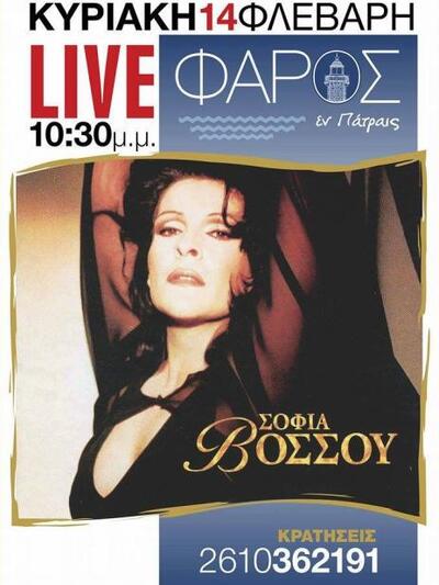 Η Σοφία Βόσσου σε ένα πρόγραμμα που περνάει με μεγάλη άνεση από τις ποπ επιτυχίες στα ωραιότερα λαϊκά τραγούδια που όλοι έχουμε αγαπήσει και τραγουδήσει, την Κυριακή 14 Φεβρουαρίου.