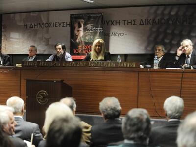 Κατάμεστη από κόσμο ήταν η αίθουσα της ΕΣΗΕΑ - Ένωση Συντακτών Ημερησίων Εφημερίδων Αθηνών, στην οδό Ακαδημίας, στην εκδήλωση παρουσίασης του πολυσυζητημένου βιβλίου της Δήμητρας Α. Παπανδρέου με τίτλο «Η Οργή του Ανδρέα» που κυκλοφορεί από τον Εκδοτικό Οργανισμό Λιβάνη.