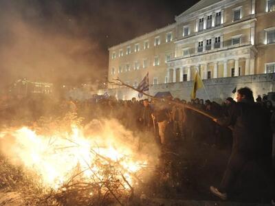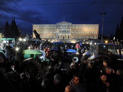 18.42 Πάνω από 10.000 αγρότες είναι συγκεντρωμένοι έξω από τη Βουλή με τα τρακτέρ τους, κορνάροντας, φωνάζοντας συνθήματα και αναβοντας φωτιές,σε εντυπωσιακές εικόνες κινητοποίησης.