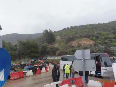 12.43 Μπλόκο της αστυνομίας στους αγρότες της Πελοποννήσου! Τους σταμάτησαν στο Χαϊδάρι, λίγο πριν από το Δαφνί και τους ενημέρωσαν ότι θα περάσουν αλλά μόνο τα λεωφορεία και όχι τα τρακτέρ.