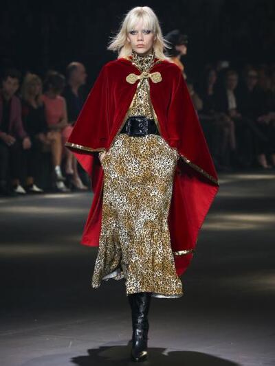 Πολλές μακριές ζιπ-κιλότ και πελώριες ζώνες μέσης, ρετρό πουκάμισα με φιόγκους, ολοκέντητα μπολερό, βελούδινες κάπες, μακριές χίππικες γούνες, στενά πουκάμισα, πλατύγυρα καπέλα χειροκροτήθηκαν. Τα μαλλιά των μοντέλων είχαν αφέλειες και στα μάτια ήταν απλωμένο χρωματιστό γκλίτερ. Από την Τζέην Φόντα ως την Πάμελα Αντερσον και τη Ντέμι Μουρ, το νέο άγριο concert look εισέπραξε τα θερμότερα εγκώμια. Η Lady Gaga "τα είπε" με την Κόρτνευ Λαβ και την Ελεν ντε Τζενέρις και ο Τζάστιν Μπίμπερ ήρθε στην εκδήλωση με το σκέιτ του. Αλλο "σκηνικό" προσώπων κι εντελώς διαφορετικό κλίμα για το μυθικό brand της ευρωπαικής μόδας.