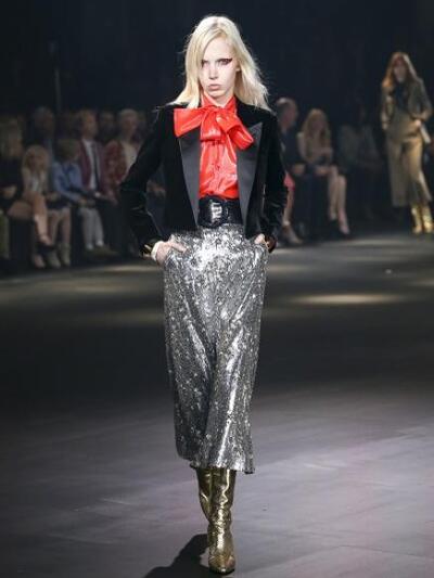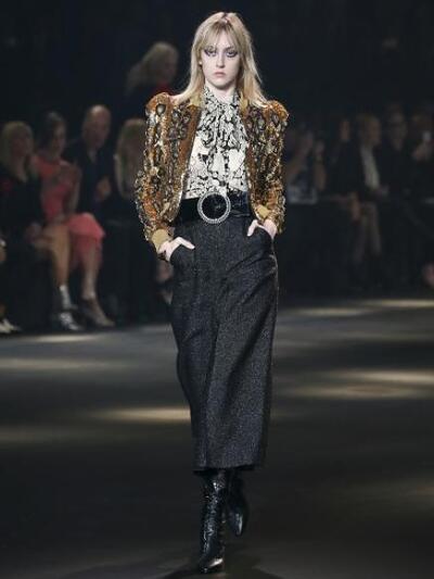 Στο θρυλικό Palladium, ιστορικό συναυλιακό χώρο του Λος Αντζελες, παρουσιάστηκε το σόου του παριζιάνικου οίκου Saint Laurent για τον επόμενο χειμώνα, βάζοντας σε πειρασμό τους celebrities της άλλης πλευράς του Ατλαντικού. Βετεράνοι και νεώτεροι χολιγουντιανοί σταρ, είδωλα της ποπ, καλλονές της μόδας, προσωπικότητες της tv ανταποκρίθηκαν με ενθουσιαμό στη γαλλική απόβαση δια χειρός Hedi Slimane. H επίδειξη ήταν συγκλονιστική: πολύ "rock wild seventies-eighties", με πλούσια αστραφτερά στοιχεία για άντρες και γυναίκες.