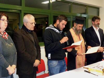 Μέσα σε θερμό ανθρώπινο κλίμα η διοίκηση, οι εκπρόσωποι σαράντα σωματείων που εκπροσωπούν 2 χιλ. αθλητές και οι γονείς, την Παρασκευή 12-2-2016, πραγματοποίησαν την εορτή κοπής της πρωτοχρονιάτικης πίτας του ΠΕΑΚ, με την ευλογία του πατρός Παντελεήμονος Γεωργόπουλου, που προσεφέρθη, ερχόμενος από τους Ταξιάρχες του χωριού Κούμπερι Τριταίας.