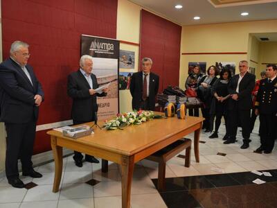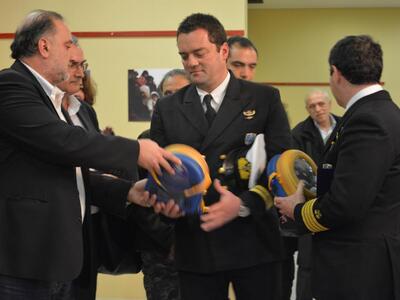 Τις συσκευές παρέλαβαν ο Λιμενάρχης Λέσβου Νίκος Βάρθης και ο κυβερνήτης ενός εκ των διασωστικών σκαφών του Λιμενικού Σώματος, Κυριάκος Παπαδόπουλος, παρουσία της διασώστριας που επιχειρεί με τα σκάφη του Λιμενικού, Ζωής Λειβαδίτου.