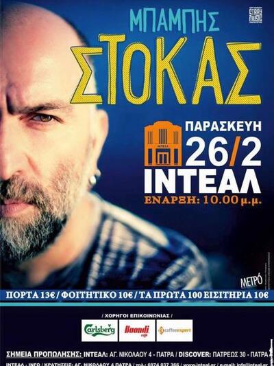 Ενας απο τους αγαπημενους της Πατρας την Παρασκευη 26 Φεβρουαριου στο Ιντεαλ.Ο Μπάμπης Στόκας σε ενα πλούσιο και απρόσμενο ανθολόγιο αγαπημένων τραγουδιών, ερμηνευμένο πάντα με άξονα το προσωπικό του αίσθημα , φέρνει τον ακροατή σε επαφή με μερικές από τις ωραιότερες στιγμές του νεότερου ελληνικού ρεπερτορίου.