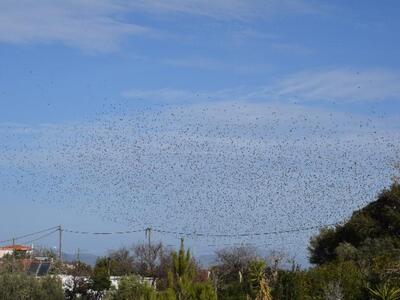 Πουλιά μεταναστεύουν κάνοντας ...τέχνη στον ουρανό. Οι φωτό είναι από την περιοχή της Βούντενης στην Πάτρα. Κρύβουν σχεδόν τον ήλιο.