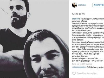 «Παντελή μου, καλέ μου φίλε, μικρέ μου αδερφέ. Τελικά την έκανες την πρεμιέρα σου. Όχι όμως απλά σαν το παιδί που έπαιζε τα τραγούδια του στο YouTube αλλά σαν ένα μεγάλο φαινόμενο... Τελικά είχες δίκιο, είσαι μεγάλο αστέρι. Και σαν μεγάλο αστέρι, αποφάσισες ότι η θέση σου είναι εκεί ψηλά μαζί με τα αλλά αστέρια. Και όπως σε κοίταζα και προσπαθούσα να σε υπερασπίζομαι και να είμαι στο πλάι σου στις χαρές σου και στις στεναχώριες σου, τώρα ήρθε η σειρά σου να μας προσεχείς και να μη μας ξεχνάς από εκεί που θα σαι... Καλή σου ώρα ρε μπαγάσα βιαστικέ. Όλα τα φιλαράκια σου από δω. Δεν θα σε ξεχάσουμε ΠΟΤΕ !!!!!R.I.P».