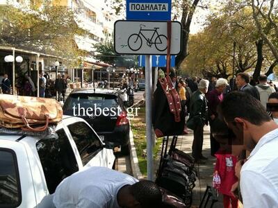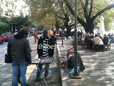 Οι παράνομοι μικροπωλητές έγχρωμοι στην πλειοψηφια τους, δεν δίστασαν να απλώσουν τα πράγματα τους, ακόμα και ανάμεσα στα τραπεζοκαθισματα των εστιατορίων και των καφέ της περιοχής.