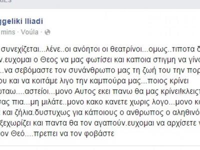 Η Αγγελική, Ηλιάδη που παρέστη και στην κηδεία του 33χρονου τραγουδιστή, όπως αναφέρει ανάρτηση του tlife.gr, απ’ όπου και η φωτ., αγανάκτησε... με αφορμή, κάποια άσχημα και πικρά πράγματα που είπαν κάποιοι, όλο αυτό τον καιρό για τον Παντελή που έφυγε... Αλλά και για τις κακίες που λένε κατά καιρούς για εκείνη... και για πολλούς επώνυμους...