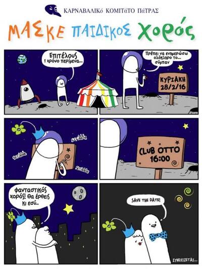 Στο πλαίσιο των εκδηλώσεων αυτών, την Κυριακή 28/2 στο club ΟΤΤΟ (Όθωνος Αμαλίας) στις 16:00 το απόγευμα, διοργανώνεται ο καθιερωμένος αποκριάτικος παιδικός χορός.