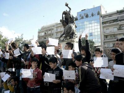 Δείτε φωτογραφίες από τους πρόσφυγες στην πλατεία Βάθης:
