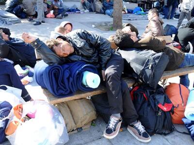 Οι περισσότεροι απ' αυτούς μάζεψαν νωρίτερα τα λιγοστά υπάρχοντά τους και κατέλαβαν τις σιδηροδρομικές γραμμές έως και το σημείο όπου υψώνεται ο μεταλλικός φράχτης με την ΠΓΔΜ.