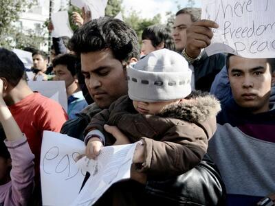 Οι πρόσφυγες ζητούν να τους επιτραπεί άμεσα να περάσουν στην ΠΓΔΜ και να συνεχίσουν το ταξίδι τους.