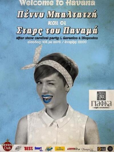 Το βράδυ της Τσικνοπέμπτης, η ΓΙΑΦΚΑ διοργανώνει το δεύτερο στη σειρά καρναβαλικό party με πρωταγωνίστρια την Πέννυ Μπαλτατζή και τους Σταρς του Παναμά και σας υπόσχεται μια νύχτα μαγική κι ονειρεμένη.